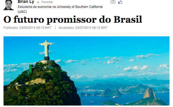 Researched and wrote about Brazil's economic status for one of my economics courses. Submitted the article to the Huffington Post, where it was published in the Brazilian version of the site.